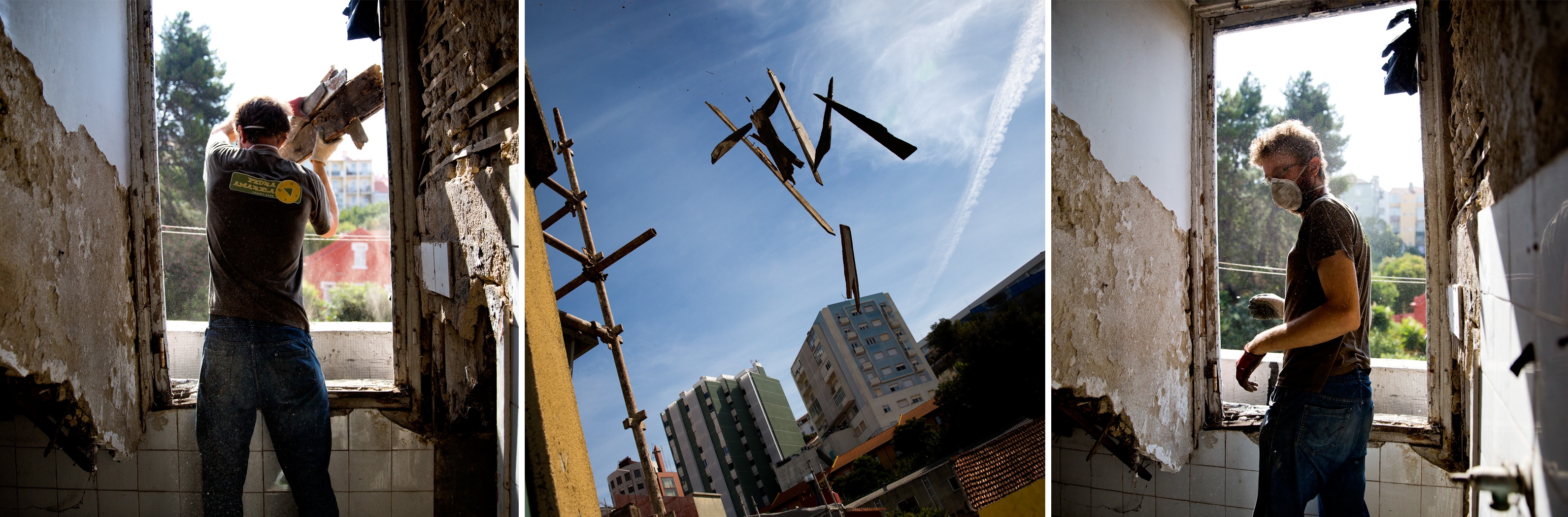 Joana Marques é um dos elementos da Assembleia de Ocupação de Lisboa. É ela que nos abre a porta do número 69 da Rua Marques da Silva. Lá dentro, perto de duas dezenas de pessoas avançam com a reparação do telhado.